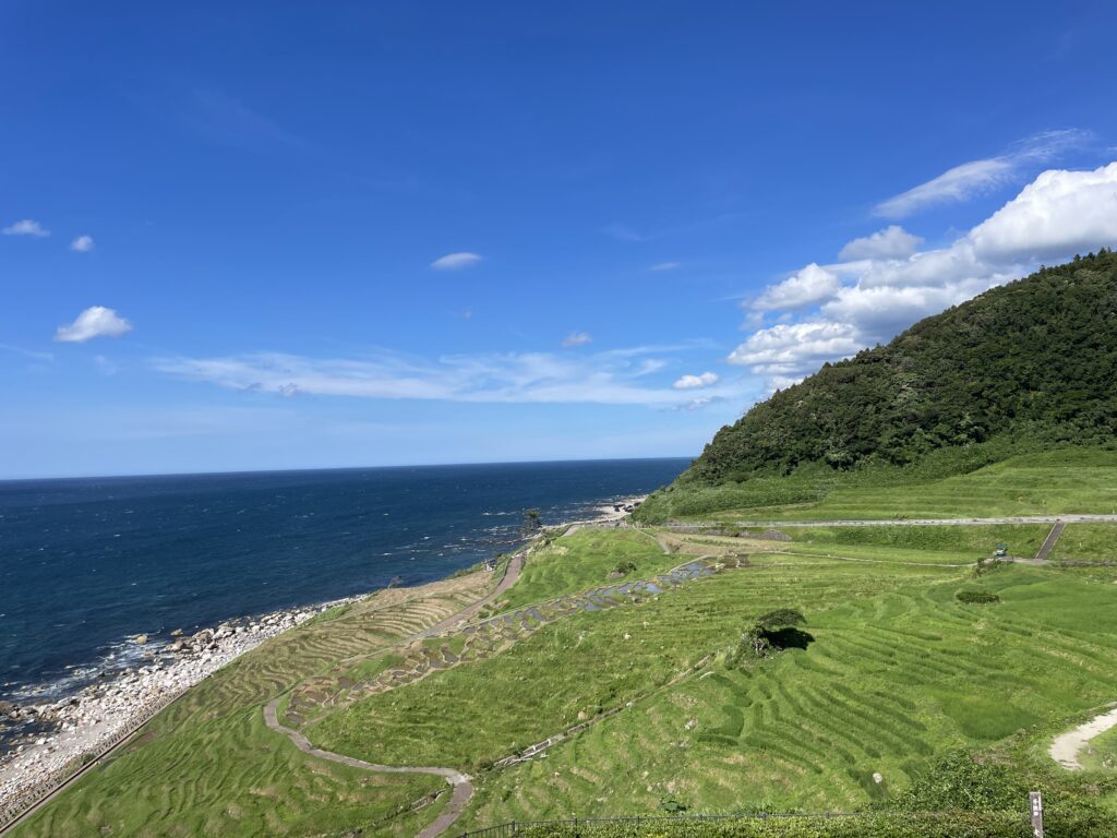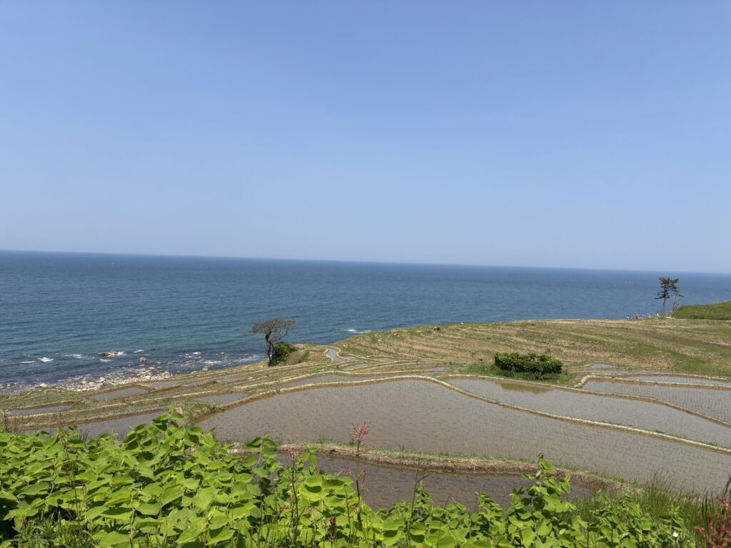 能登の観光名所として知られる千枚田では、水を引き田植えを終えたばかりの美しい景色が広がります。昨年は、二重被災を受け、作付けを行うことができなかった中、地元農家やボランティアによって少しずつ準備が進められてきました。今年は全体2割200枚程度に田植えができたそうです。