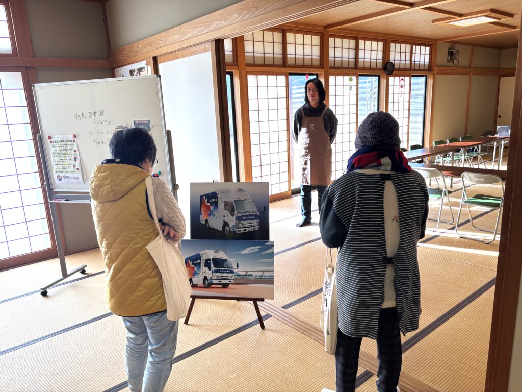 能登での活動が3年目に差し掛かる2025年末より本格的な移動図書館車の運行準備を進めております。これまでは、本を折りたたみコンテナに詰め、軽バンに積載し巡回を続けてきましたが、間もなく新しい移動図書館車を迎え入れます。