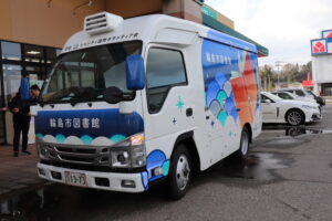 初めて輪島市にやって来た車両は鮮やかなデザインで移動図書館がやって来た!という感じです。