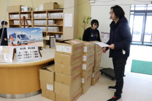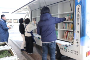 1月中旬には輪島市図書館に移動図書館車が来て本の積み込みを行いました。