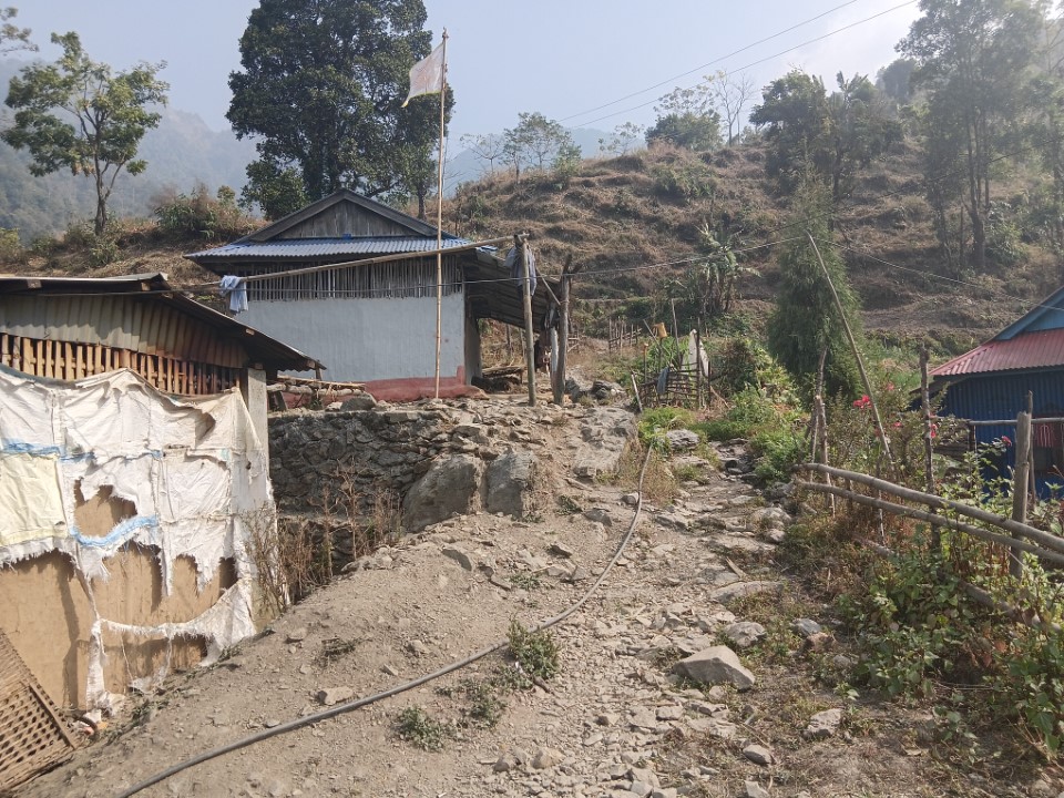 到着した村の一角にて。ネパールの少数民族、リンブーの人たちが多く暮らしています。