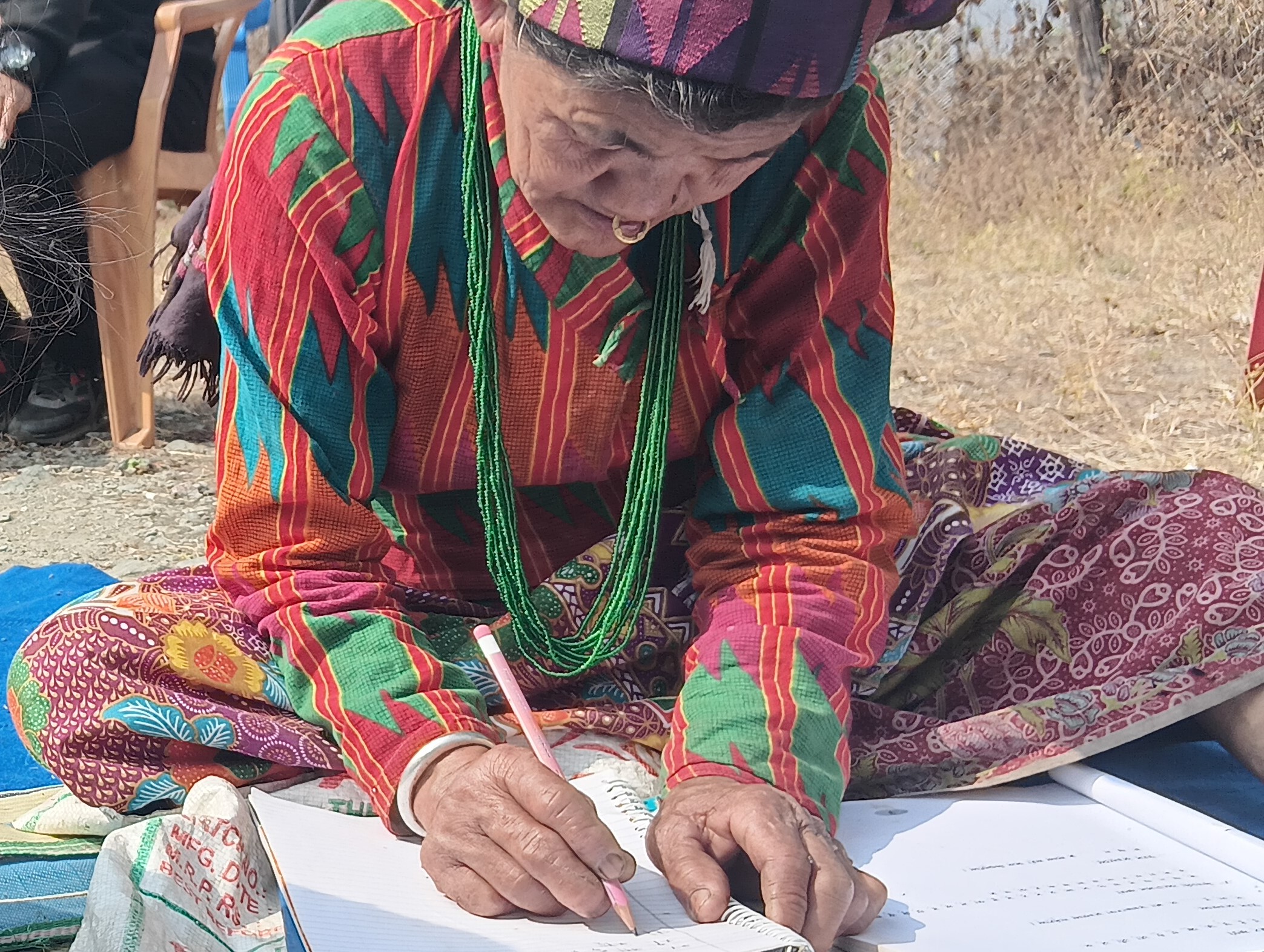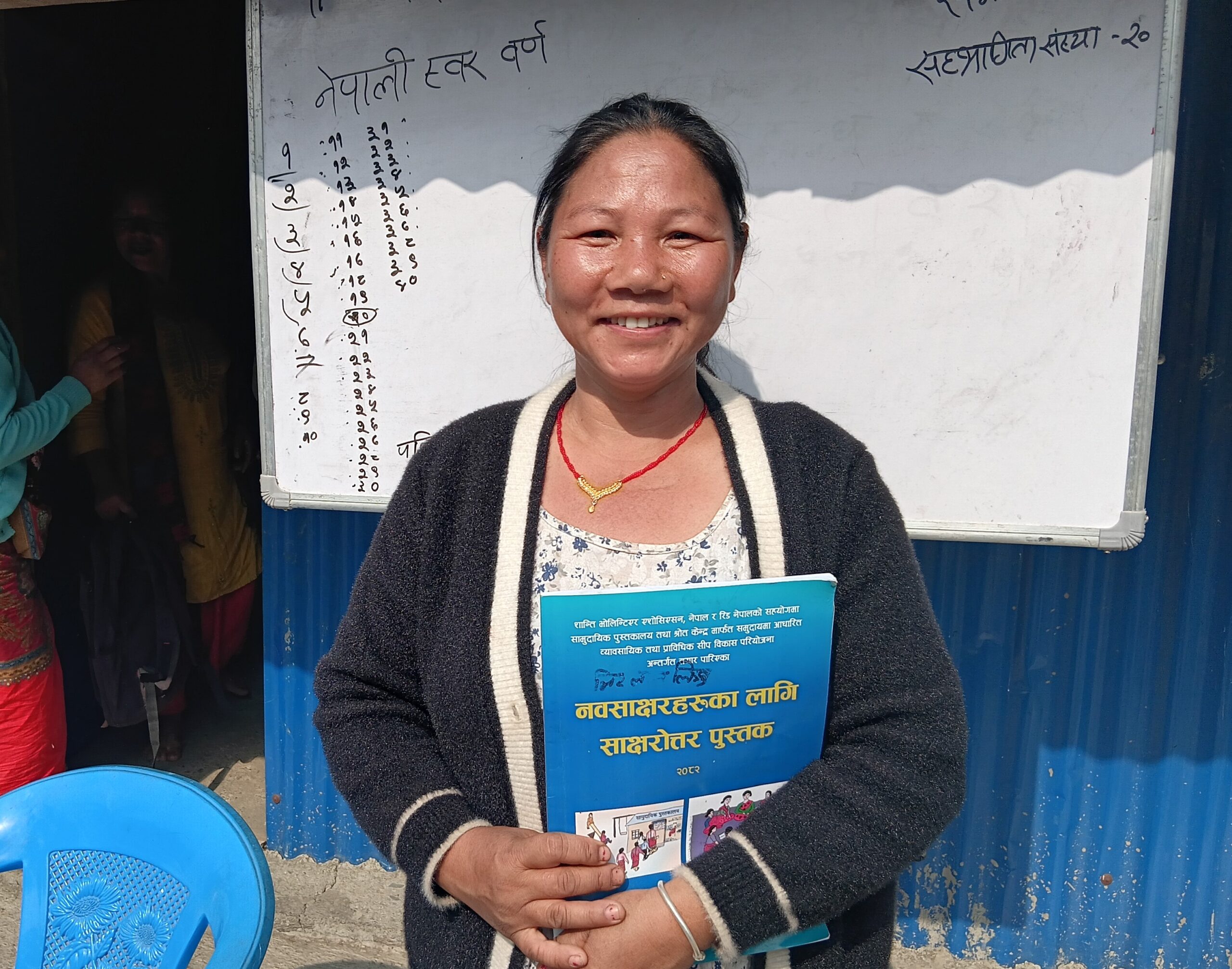 こちらの女性は識字教室で講師を務めるウニタさん。ネパール語で授業を行うそうですが、リンブー語のほうが得意な参加者もいるので、時にリンブー語も交えて教えるといいます。