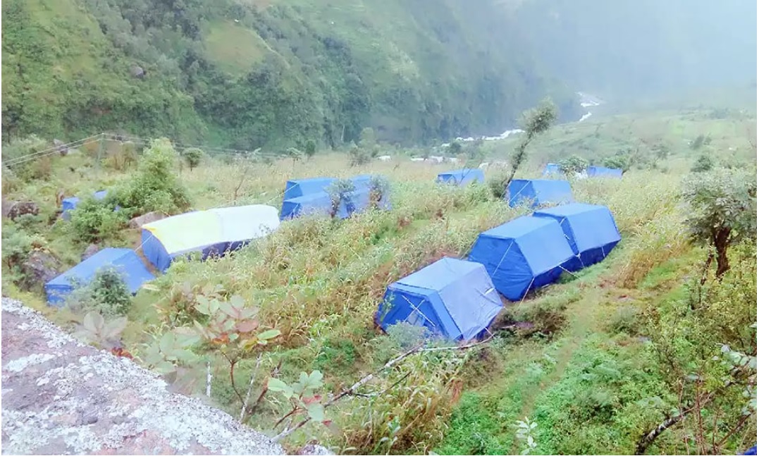 2020年9月8日、シャンティがネパールで学校建設を行っている村で、連日の豪雨による大規模な地滑りが発生しました。シャンティが建設中の校舎の学校に通っていた児童が暮らすインドラヤニ村の115世帯が家を失いました。地滑りで亡くなった方がいなかったことは唯一、不幸中の幸いでしたが、2.5ヘクタールの農地が失われました。被災者は、隣村の空き地に避難し、テントで生活しています。被災地では多くの地割れが起きており、降雨が続いているため、再び地滑りが起きることが懸念されています。