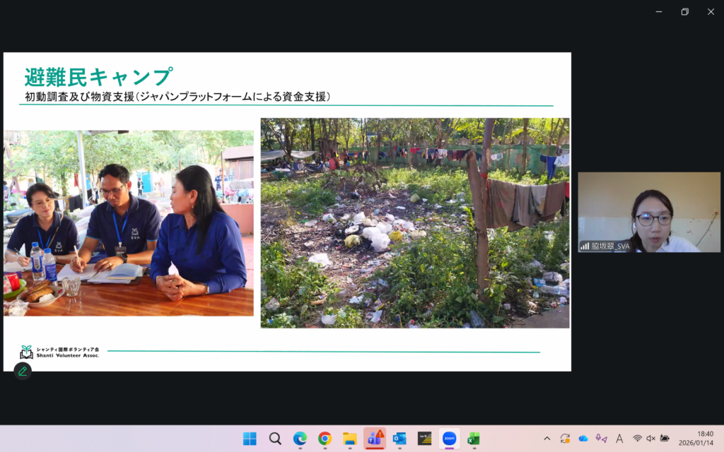 1月14日にシャンティ国際ボランティア会はカンボジア・タイ国境紛争により発生したカンボジアにおける国内避難民に対しての緊急支援活動に関する報告会を実施しました。