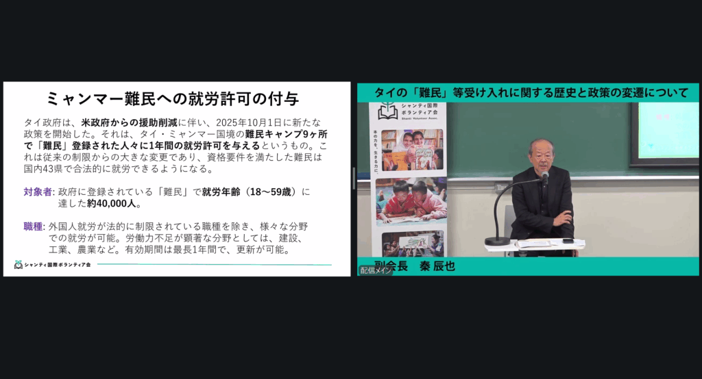 タイの難民受け入れの歴史や現状について説明する秦副会長