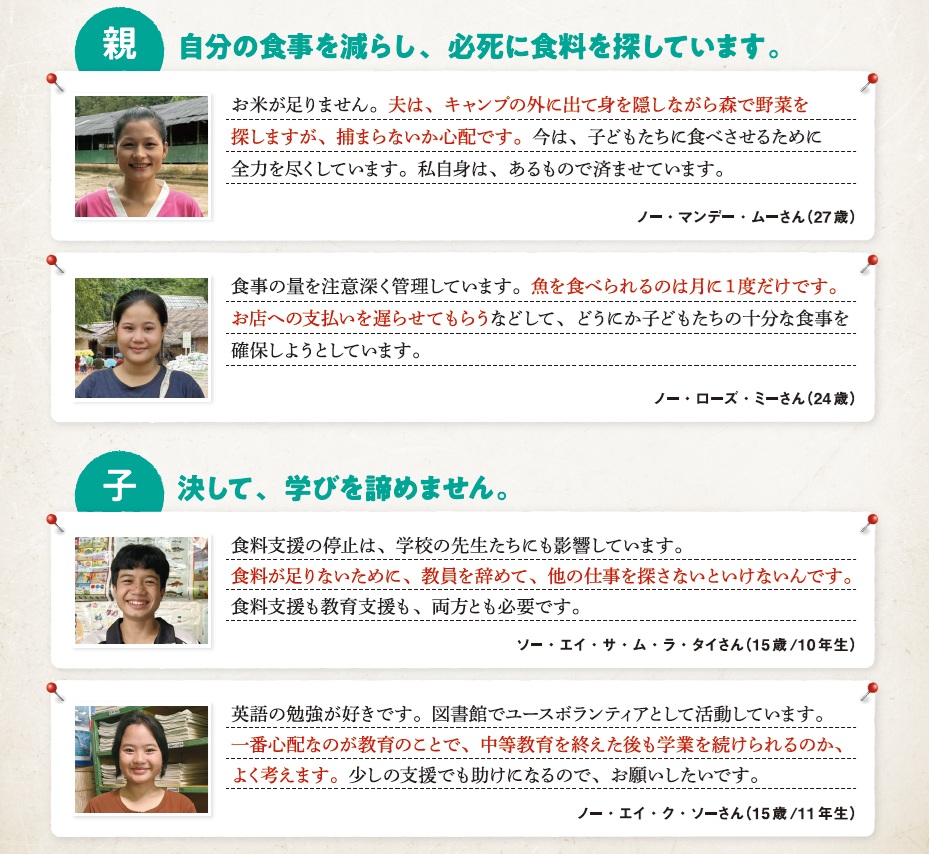 この8月以降、国際社会からこの難民キャンプへの食料支援がストップし、10万人が飢餓のおそれにさらされています。