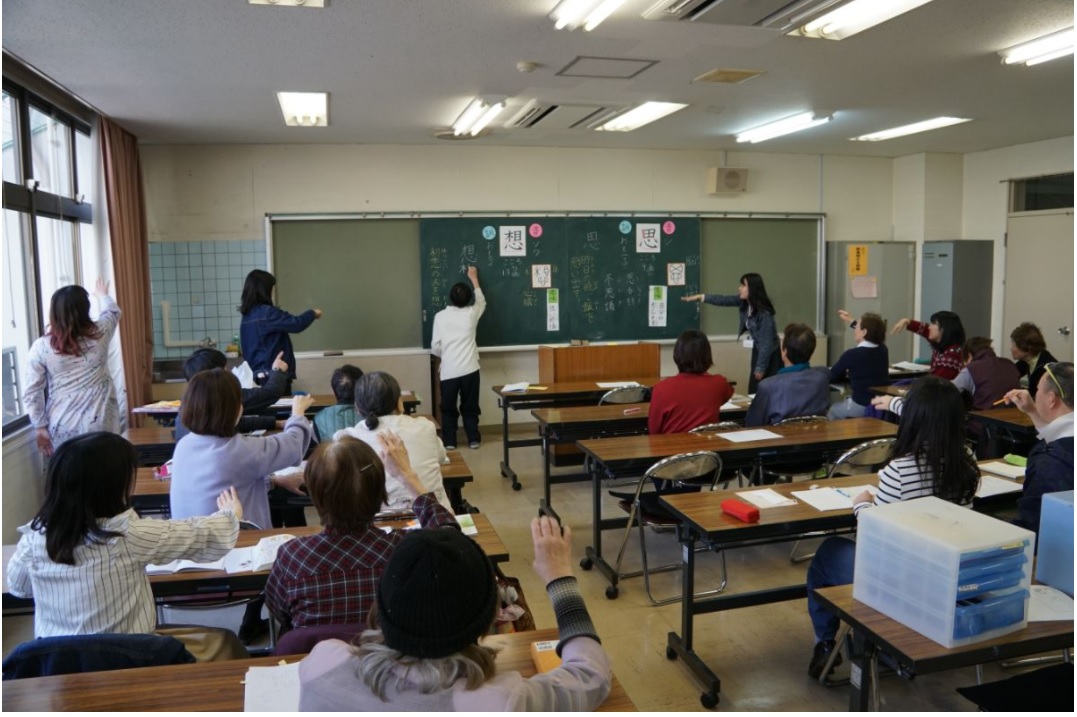 現在は、事務所の運営が困難になって手放し、学習者もスタッフも高齢化が進んで、人数も少なくなりました。4年前から、社会人、神戸大学、親和女子大学の3つのグループで持ち回りの一斉学習をしています。形は変われど若い学生と高齢の学習者がともに学び合う中で毎回毎回、大切な何かの種が蒔かれていると思います。