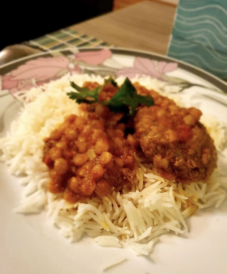 ↑ミートボール・チャラウ:ミートボールとごはん