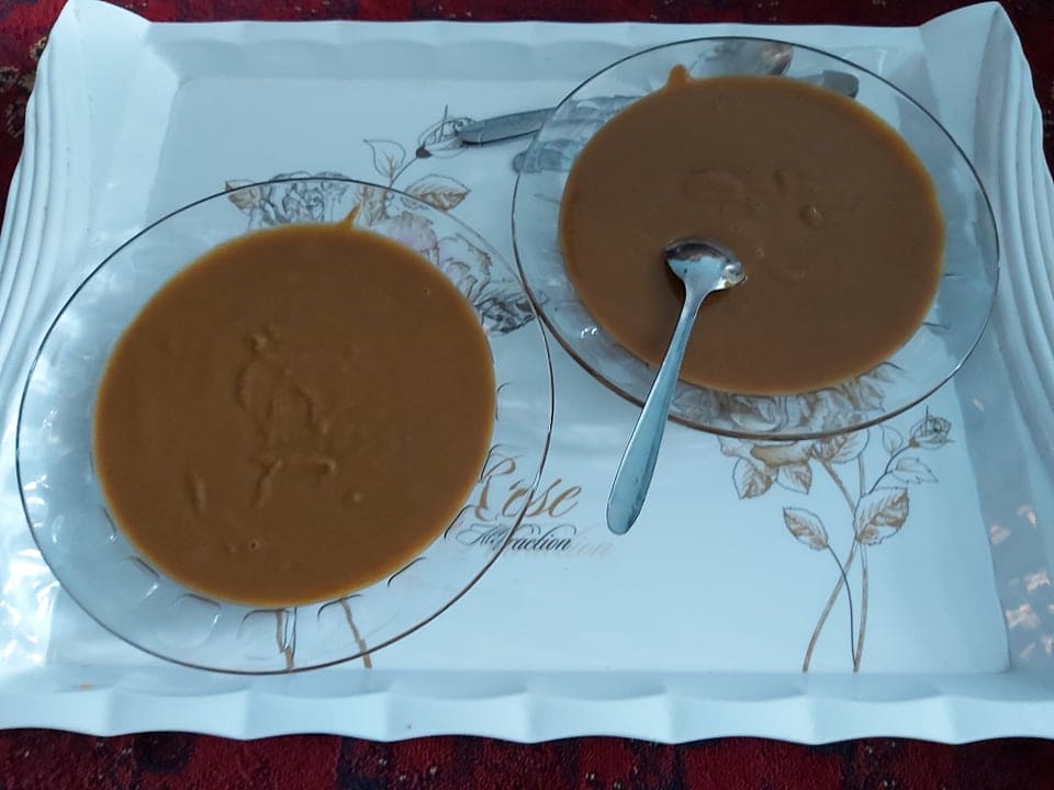 ↑サマナク:小麦の根と小麦粉、水を混ぜて煮たもの。昼食と夕食の間のおやつとして食べられます。