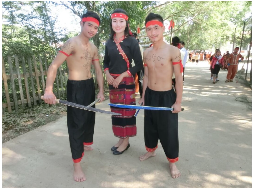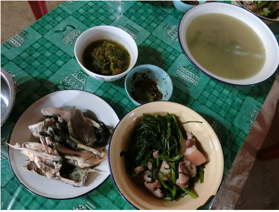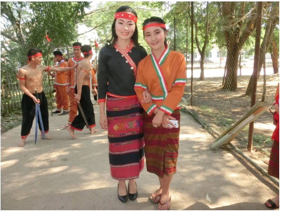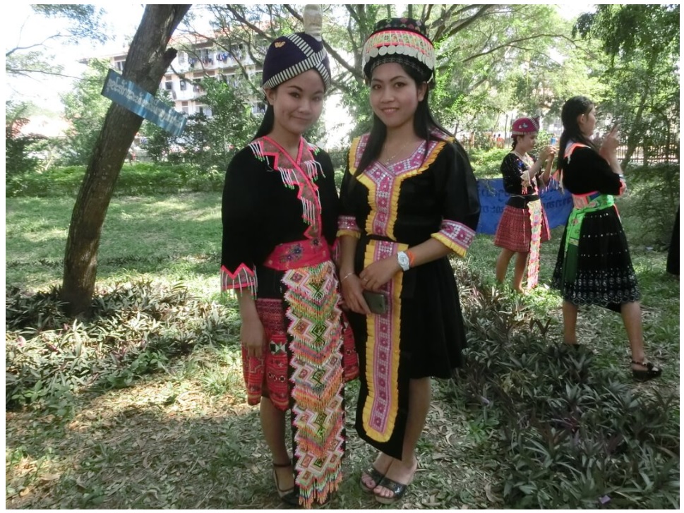 中国の雲南省や四川省などから南下してきた民族で、高地や山頂近くに多く住んでいます。焼畑でうるち米やトウモロコシを栽培し、茹で鶏に塩と唐辛子をつけて野菜と食べたり、鶏の茹で汁をスープとして飲んだり、シンプルであっさりした料理が多いです。家の中では土足で、土間の家が多く、窓は小さいのが特徴です。