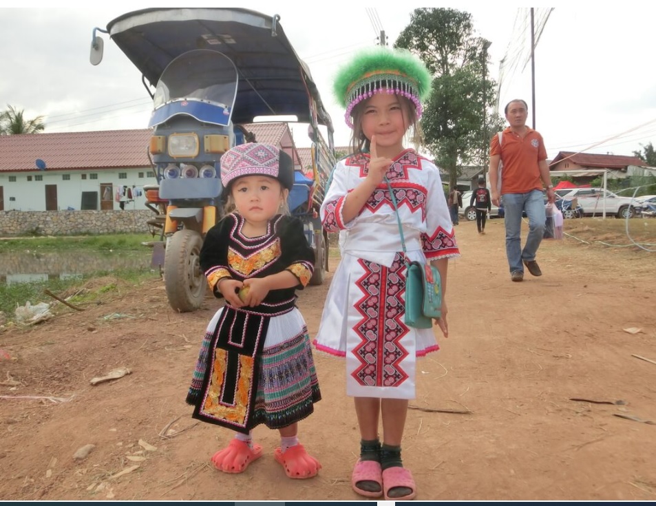 モン族の子どもたち。お母さんの手刺繍が施された民族衣装を着ています。