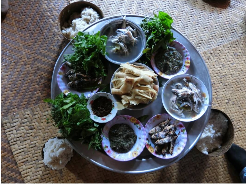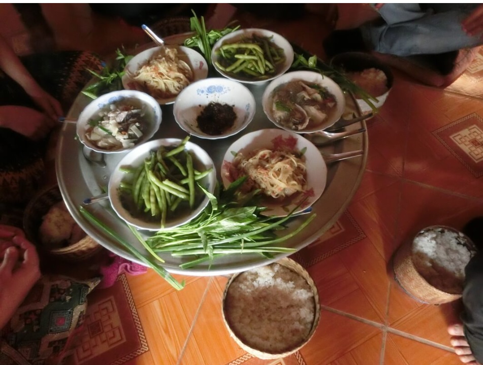 ラオスの先住民族で、標高300~800mの山の中腹や丘陵地に多く住んでいます。焼畑を行い、狩猟や森の恵みを生かして暮らしてきた森の民です。32の民族が山腹ラオに分類され、民族によって異なりますが、自然崇拝が多く、高床住居で暮らしています。主食はもち米で、森で捕れた肉や野菜を炒め煮するなど少し濃い目の味付けが多いのが特徴です。