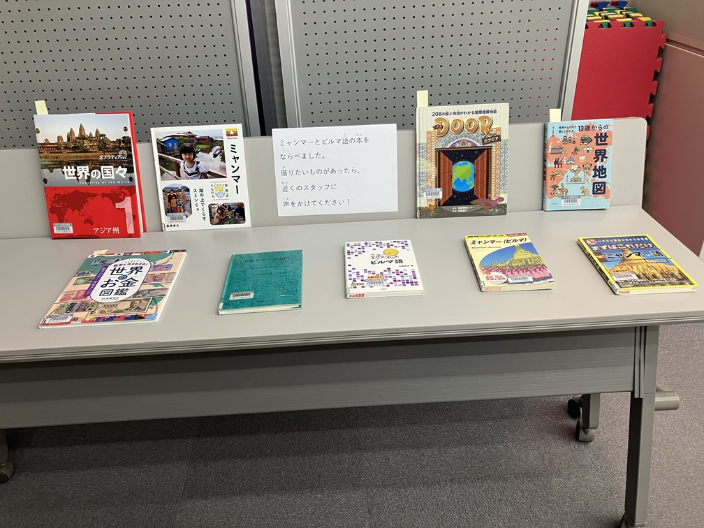 会場では、図書館員さんがミャンマーのことを紹介する書籍コーナーを設置してくださいました。