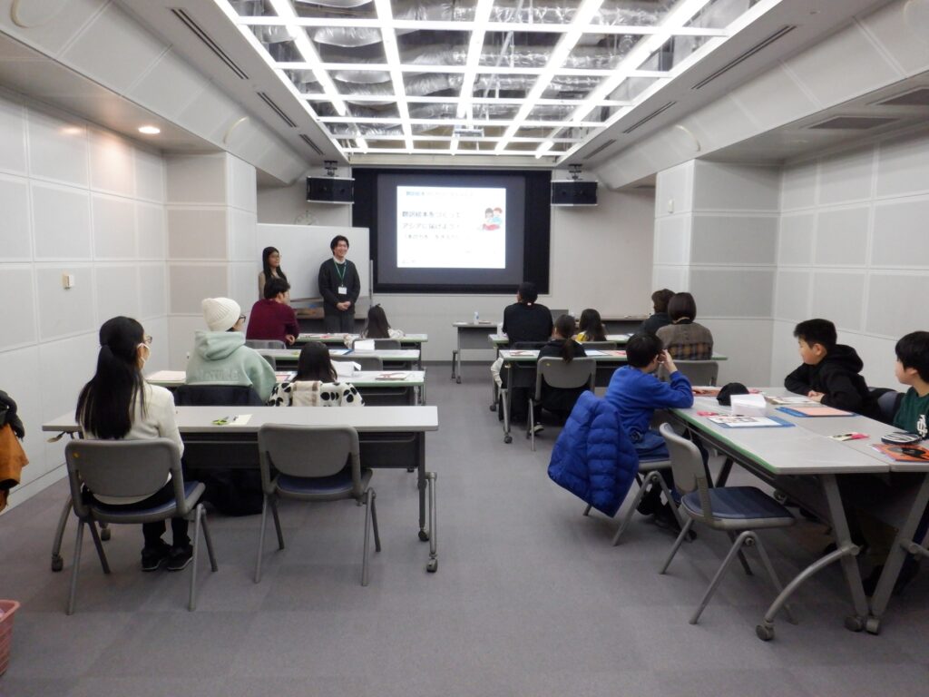 写真は会場の様子です。このワークショップは、子どもや親子で参加できるプログラムとして港南図書館が企画・開催しました。