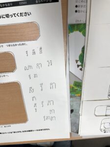 「3年前も参加して楽しかったから今日も来ました」という中学3年生の女の子は、何度もシールの余白でカンボジアのクメール文字を練習してから「お名前シール」に記入してくれました。