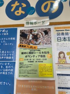 「あなたがシールを貼った絵本で、子どもたちの世界が広がります!」と書かれた参加者募集チラシを館内やウェブサイトなどで発信されていました。定員に達して申込終了されたとのことで、関心を持ってくださる方が多く、嬉しく思います。