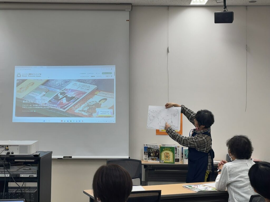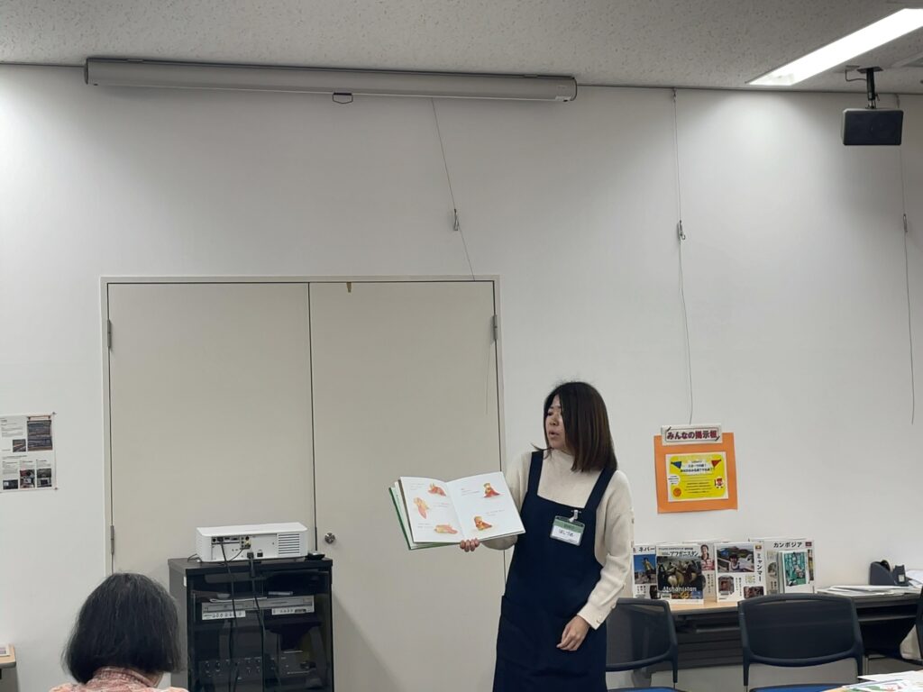 はじめにワークショップの目的、翻訳絵本を届ける先のカンボジアについて、図書館員の村岡さんから丁寧な説明がありました。