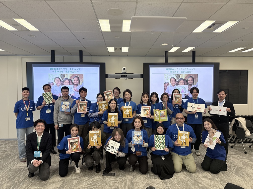翻訳絵本づくりのワークショップを開催いただきました。社員の皆さまにご参加いただき、合計30冊の翻訳絵本を作成していただきました。