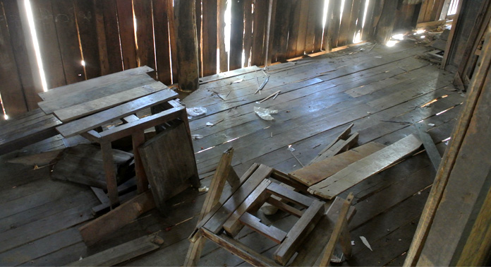 ミャンマーのとある小学校。校舎の壁や床がはがれてぼろぼろな状態。