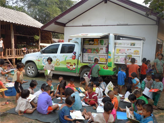 図書館が遠くて、本を読めない子どもたちのために、移動図書館活動を行います。